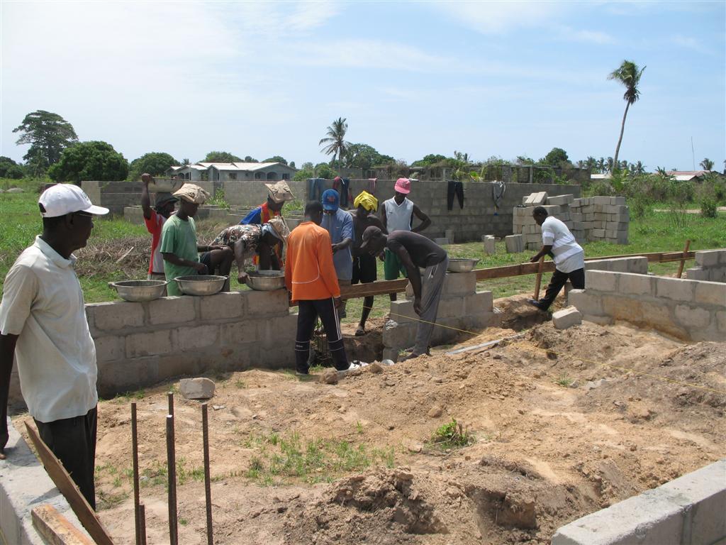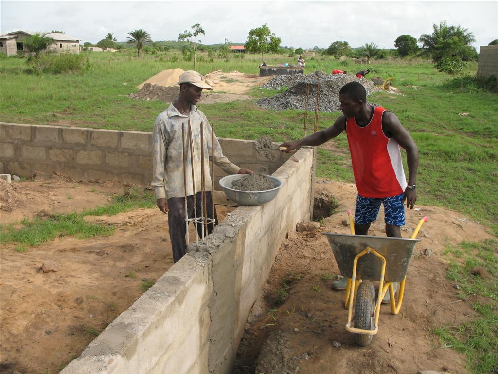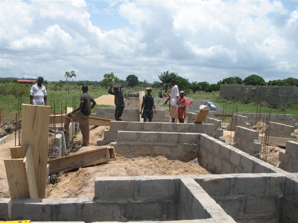Anbei die aktuellesten Bilder. Tut mir leid, dass ihr so lange warten musstet. Viel Arbeit. Am Donnerstag wurde der erste Schritte der Fundamentlegung abgeschlossen. In einer Woche geht es weiter mit der Fuellung, bevor die Fundamentlegung endugueltig im August im dem “Floor bed” beendet wird. Dank an alle Foerder, die dies ermoeglichen.
