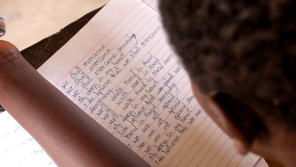 Zusammen haben wir als Leiter des Music und des Movie Workshops schon früh beschlossen gemeinschaftlich etwas anzugehen. Angeregt von der Idee des AIM. Mitarbeiters Francis setzen wir unsere Arbeit für das nächste halbe Jahr vorerst, dann werde ich für meinen Teil Ghana verlassen, unter das Thema ‚Frieden‘. Im Rahmen des von uns ins Leben gerufenen ‚Peace Projects‘ soll es nun darum gehen zum Einen die beiden Workshops durch die thematische Arbeit und durch geplante gemeinschaftliche Freizeitaktionen zu verbinden um einen Zusammenhalt in der AIM. Jugend zu kreieren, zum Anderen soll unser Projekt den Kindern und Jugendlichen Raum geben sich mit dem Thema Frieden, mit all seinen Facetten, auf  künstlerischer Art und Weise  auseinanderzusetzen. Im Musikworkshop wird das Thema also musikalisch verarbeitet und neben aktiver Chorarbeit  ist ein Ziel selbst geschriebene Lieder mit den Jugendlichen zu erarbeiten. Der Filmworkshop wird eine Dokumentation zum Thema drehen, die Interviews mit interessanten Personen der Umgebung zeigt sowie die Perspektive zum Thema Frieden seitens der ghanaischen Jugend. Auch die Arbeit des Musikworkshop soll dokumentarisch begleitet werden. Später wird dann auch, als Highlight und wenn die Arbeit so läuft wie wir uns das vorstellen, ein Musikvideo zu einem der selbstgeschriebenen Songs entstehen. Zum Abschluss des Projekts Ende Februar 2015 planen wir mehrere Besuche in einem Tonstudio in Cape Coast sowie als Highlight ein Abschlusskonzert, bei welchem wir einerseits die eigenen Lieder aber auch Chorstücke zum Thema Frieden vortragen wollen. Anschließend soll die Premiere des Dokumentarfilms im Rahmen des Konzertabends stattfinden. Ihr seht, große Pläne! Wir freuen uns riesig auf die bevorstehende Arbeit. Weitere Infos zu unserem Projekt und wie ihr uns unterstützen könnt unter https://www.betterplace.org/de/projects/21324-african-information-movement-peace-project.