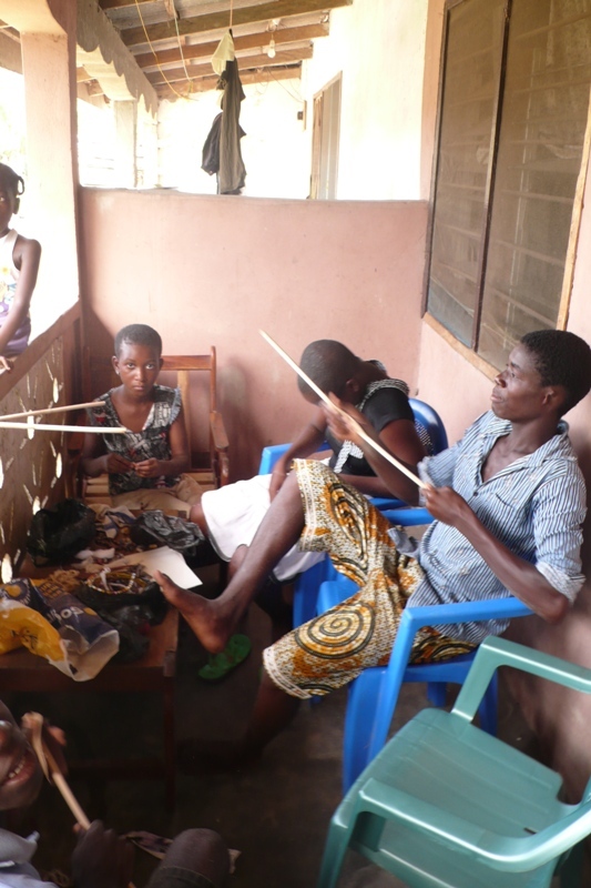 Anlässlich des „African Kiss II”-Festivals, das von unserem Deutschen AIM. Jugendclub organisiert wird und am 13. Juli in Freiburg i. Breisgau stattfindet, stellt der ghanaische Jugendclub momentan eigene „afrikanische Armbänder und Ketten” her, die bei der Benefizveranstaltung zum Verkauf angeboten werden sollen. Die Ketten werden entweder aus Rohrstöcken, die eigens bearbeitet, gefärbt und poliert werden, oder aus verschiedenen bemalten Tonstücken und auch Muscheln oder bestimmten Pflanzensamen hergestellt.