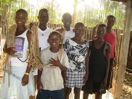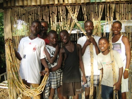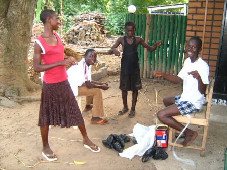 Die Mitglieder aus dem Jugendclub Komenda bekamen die Aufgabe, einen Vorhang aus Naturmaterialien zu basteln. Der Vorhang soll das Sacro Bosco schmücken, eine Bar und Treffpunkt für viele Ghanaer in Komenda. Mit dem erwirtschafteten Geld unterstützen der AIM. Jugendclub die Arbeit von AIM.