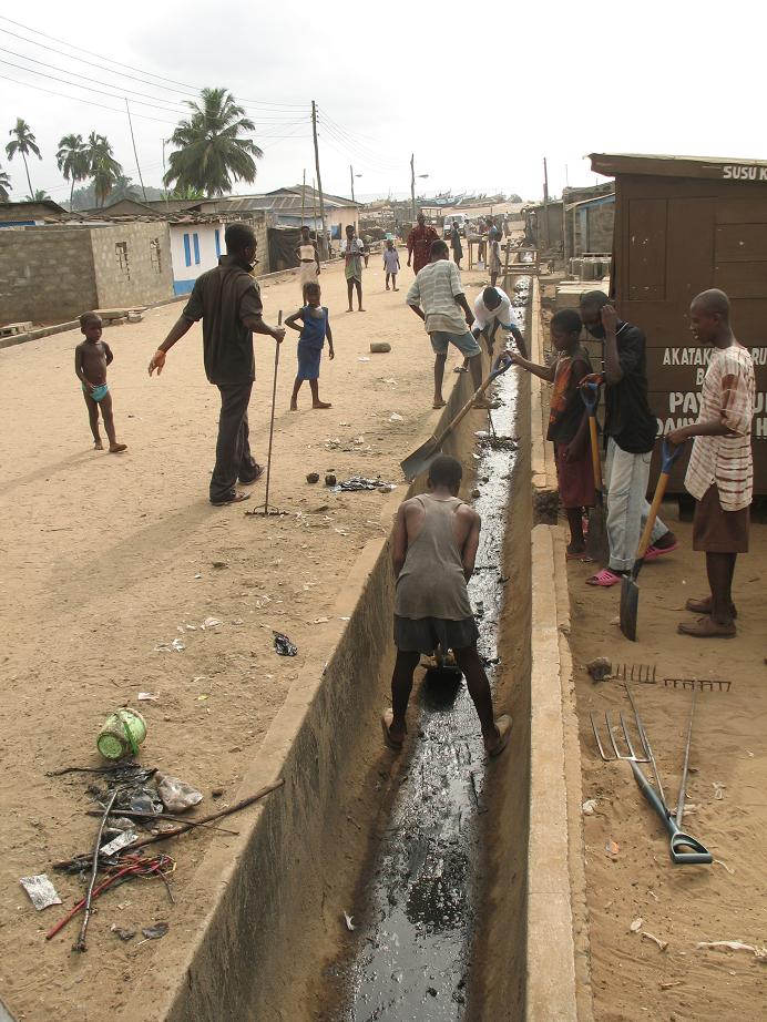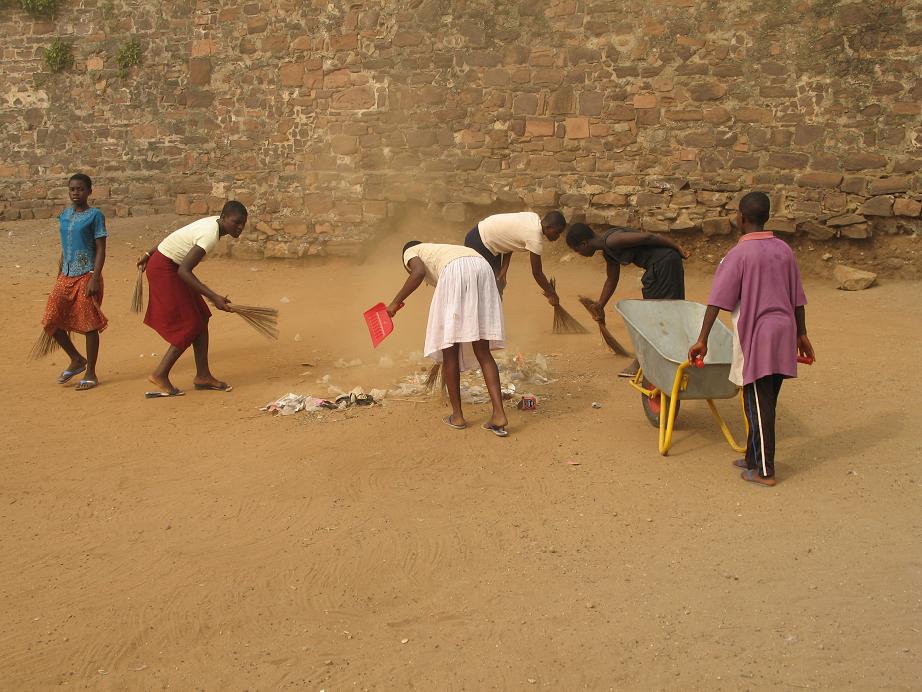 Gereinigt wurden der Vorplatz des Castles, die Strasse, und natürlich ganz speziell die Abwassergraeben, die notorisch mit Plastikmuell und ähnlichem verstopft sind, sodass ein stark riechender schwarzer Schlamm entsteht, der ausserdem einen hervorragenden Brutplatz fuer Moskitos bietet. Durch das entfernen des Müllberges wurde ein Abfliessen des Wassers möglich, was diese Brutplaetze zerstoert.