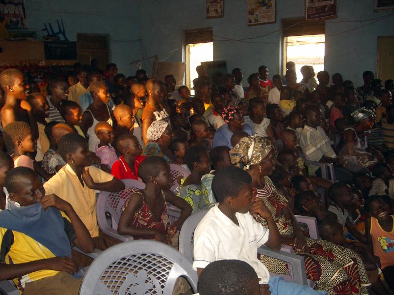 Die Town Hall fühlte sich mittlerweile – nur leider nicht mit Eltern der Jugendlichen, sondern mit Hunderten von Kids, die mitbekamen, dass es hier etwas „umsonst zu schauen“ gab. Was sollte ich machen? Allein mit gerademal der Hälfte unserer Youth Club Member und umringt von unendlich vielen Kids, die sich wie ein Schwarm von Insekten überall hinsetzten und durcheinander summten. Dazu war die Hiplife Musik zur Unterhaltung so laut, dass man sein eigenes Wort nicht verstehen konnte, und um dies noch zu bestätigen, trommelten die wartenden, gelangweilten Jugendlichen noch eifrig auf die Trommeln. Was lief schief? Wo sind die Jugendlichen? Einer unseren Jüngsten kam auf einmal zu mir, sagte mir, unser jüngerer Youth Club Präsident Francis (wir haben einen jüngeren und einen älteren Präsident zur Aufgabenteilung und Anleitung des Jüngeren..) wäre bei seiner Schule und spiele Fussball…?!