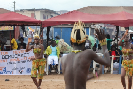Bereits vor gut 3 Wochen war es soweit – das Finale vom grossen ‘Soccer for Democracy’ Fussballtournament und Demokratieprojekt fand auf dem Marin Park in Elmina statt. Vor idyllischer Kulisse trafen die Teams aus Komenda und Elmina im Finale gegeneinander an. Gespielt wurde auf rotem Sand, direkt neben der Fischerbooten und vor der Weltkulturerbestaette ‘Elmina Castle’.