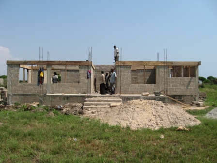 Auch am heutigen Samstag wurde fleissig gebaut. Nachdem am fruehen Morgen der Zimmermann die letzten Verschalungen fuer die Decke am vorderen Teil des Gebaeudes befestige, konnten die Maurer den ganzen Tag ueber Kieselsteine, Sand, Wasser und Zement mischen.