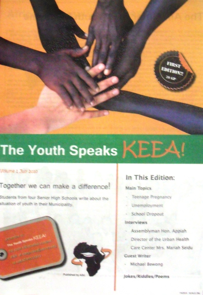 „The Youth speaks KEEA!“ wird derzeit an allen Senior High Schools in der KEEA Municipality sowie bei den Festivals in Elmina, Komenda und Cape Coast verkauft. Nun sind wir auf Sponsorensuche für die zweite Ausgabe. Über jeden, der sich für das Projekt begeistert und uns unterstützen kann, freuen wir uns sehr!