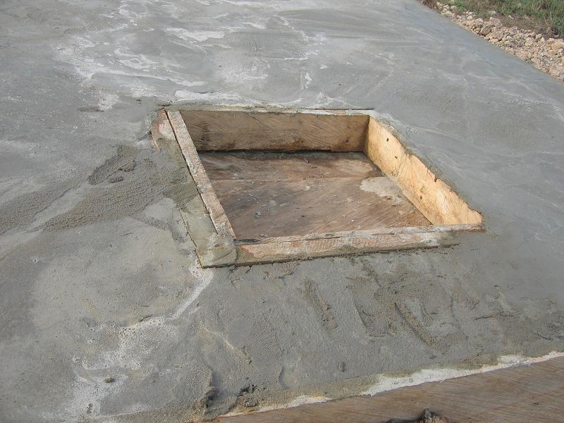 Ein quadratisches Loch zum Einstieg und zum Einfüllen des Wassers wurde gelassen. Damit kein Unbefugter Wasser entnehmen kann (Wasser ist sehr begehrt), wird anschliessend noch eine abschliessbare Eisentür eingebaut.