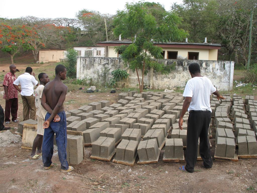 Weiterhin werden eifrig Steine gepresst. Bis Mittwoch werden unsere 1500 Bloecke fertig werden. Am gleichen Tag ist geplant, das Profil der Schule auf dem Land abzustecken, sollten wir bis dahin die notwendige, jedoch obligatorische Baugenehmigung bekommen
