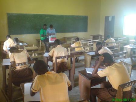 Von Dienstag bis Freitag sind wir in jeweils eine Schule gegangen, um zuerst um halb acht bei der morgendlichen Versammlung, bei der die Ghanaischen Schüler sich alle vor der Schule einfinden die Nationalhymne singen und die Flagge hissen, etwas über den Youth Club und unsere Aktivitäten zu erzählen. Nach dieser kleinen Werbeaktion haben wir dann von jeweils 25 Schülern pro Schule die Fragebögen ausfüllen lassen.